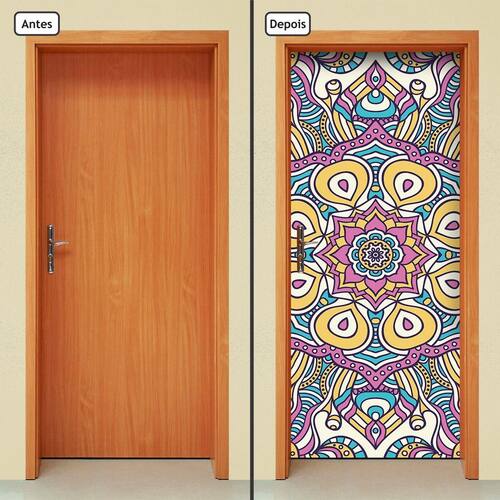Adesivo Decorativo de Porta - Mandala - Os Adesivos de Porta da Allodi foram feitos para transformar e dar mais vida aos ambientes, aplicados nas portas da sala, do quarto, dos corredores, dão uma cara nova ao seu ambiente, sem dor de cabeça e sem sujeira. - Fabricados em vinil adesivo de alta qualidade e em uma única peça(não utilizamos vinil promocional e nem enviamos em duas partes) não deixa emendas na colagem, garantindo maior qualidade e beleza no resultado final. - Produto de fácil instalação, enviado na medida padrão de 90cm x 210cm ele se adapta a todas as medidas de porta, bastando apenas remover as sobras de material ao final da colagem caso as medidas da sua porta sejam menores.