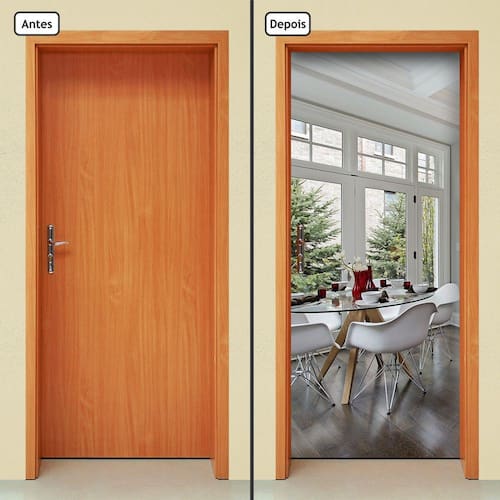 Adesivo Decorativo de Porta - Sala de Jantar - Os Adesivos de Porta da Allodi foram feitos para transformar e dar mais vida aos ambientes, aplicados nas portas da sala, do quarto, dos corredores, dão uma cara nova ao seu ambiente, sem dor de cabeça e sem sujeira. - Fabricados em vinil adesivo de alta qualidade e em uma única peça(não utilizamos vinil promocional e nem enviamos em duas partes) não deixa emendas na colagem, garantindo maior qualidade e beleza no resultado final. - Produto de fácil instalação, enviado na medida padrão de 90cm x 210cm ele se adapta a todas as medidas de porta, bastando apenas remover as sobras de material ao final da colagem caso as medidas da sua porta sejam menores.