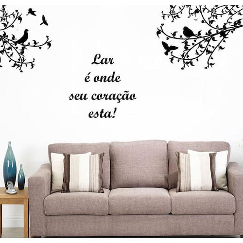 Adesivo decorativo de parede galhos com frase sobre lar e seu coração