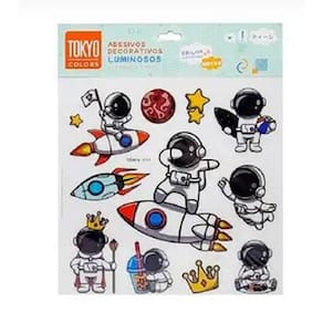 01 cartela de adesivos Astronauta ColoridoManeiras de usar os adesivos:Espelhos;Janelas;Armários;Paredes lisas.Duração de até 4 horas após as luzes se apagarem.Recarrega rapidamente com luz.Instruções de uso:1- Limpe a superfície onde itens serão fixados;2- Retire os adesivos da cartela e pressione levemente sobre o local limpo.Este adesivo não apenas adiciona um toque especial à sua decoração, mas também brilha no escuro, criando um efeito mágico e fascinante durante a noite.Com um tamanho de cartela de 20 cm x 20 cm, ele é perfeito para aplicar em paredes, tetos ou qualquer superfície lisa, transformando qualquer ambiente em um verdadeiro cenário espacial.Ideal para quartos infantis, escritórios, ou qualquer lugar que precise de um pouco de magia e inspiração, o adesivo de astronauta e galáxia é fácil de aplicar e remover, sem danificar as superfícies. Ele proporciona uma atmosfera relaxante e sonhadora, perfeita para estimular a imaginação e os sonhos de pequenos e adultos.Deixe seu ambiente mais alegre e criativo com esse adesivo único, e transforme sua decoração com a magia do espaço. Cada detalhe do adesivo foi pensado para trazer a beleza e o mistério do universo para dentro da sua casa, permitindo que sua imaginação voe até as estrelas!Cartela de Adesivos-Luminosos-Brilha no Escuro-DecorativoMedidas: 25x20,5cmComposição: Plástico