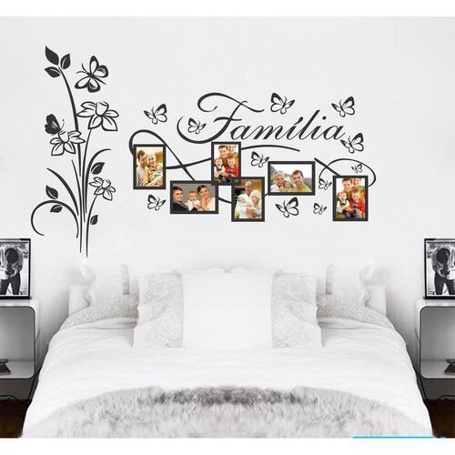 Adesivo Decorativo de Parede Porta Retratos Família Com Borboletas e Floral e Borboletas