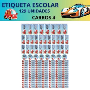 Adesivo Etiqueta Escolar Personalizado Vinil Carros 129UN - Cor: Carros 4
