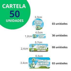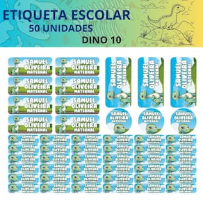 Adesivo Etiqueta Escolar Personalizado Vinil Dinossauro 50 UN - Cor: Dino 10
