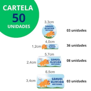 Adesivo Etiqueta Escolar Personalizado Vinil Dinossauro 50 UN - Cor: Dino 2