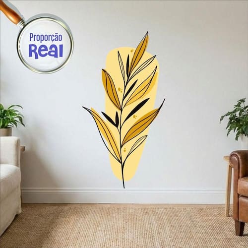 Adesivo Floral Boho Amarelo Estilo Nórdico 63x120 Minimalista Mod.03