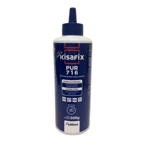 Adesivo Liquido Pur 716 500g Kisafix Adesivo líquido monocomponente de poliuretano que reage e cura com a umidade do ar, indicado para colagens de alta performance. Uso interno e externo em esquadrias de madeiras como janelas e portas, escadas e rodapés, madeiras estratificadas, engrossamento de chapas, painéis de MDF, aglomerados, cerâmicas e espumas rígidas, entre outros. Possui resistência a umidade D4 e atende a norma DIN EN/204. Tempo de garantia: 3 meses. ** Preço do produto em PC **