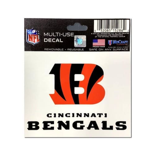 Adesivo Multi Uso CINCINNATI BENGALS - NFL Decalque licenciado oficialmente. Os adesivos multiusos de 7,6cmX10,1cm com fundo transparente aderem a várias superfícies e são removíveis e reutilizáveis. Esses aderentes versáteis podem ser usados em ambientes internos ou externos e não deixam resíduos quando removidos. Feito nos Estados Unidos. Tamanho: 7,6cm X 10,1cm Fundo Transparente Marca: WinCraft Time: CincinnatiBengals Importado e Licenciado Oficialmente pela NFL