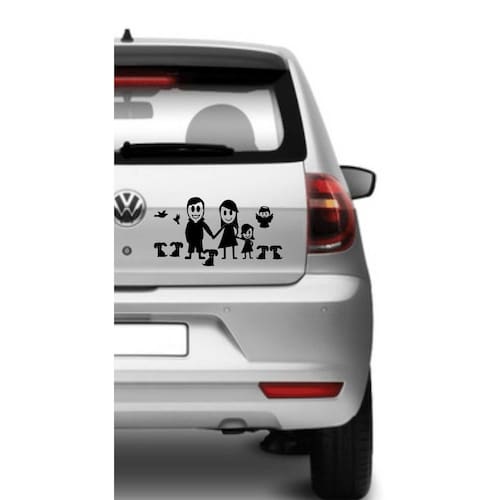 Adesivo para carro familia feliz mod 45 Cor: preto As imagens anunciadas são ilustrativas Tamanho do adesivo O adesivo da foto parece grande Então atenção: O modelo que está na foto não se refere ao tamanho do adesivo anunciado. deixamos o adesivo grande para que você possa visualizar melhor o produto que está comprando