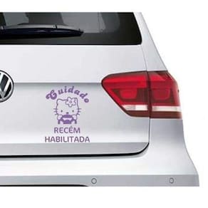 Adesivo para carro recém habilitada - stitch Cor: branco As imagens anunciadas são ilustrativas Tamanho do adesivo O adesivo da foto parece grande Então atenção: O modelo que está na foto não se refere ao tamanho do adesivo anunciado. deixamos o adesivo grande para que você possa visualizar melhor o produto que está comprando