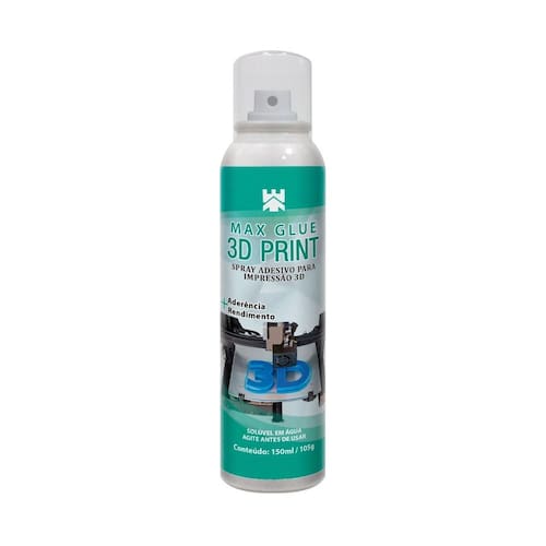 Max glue 3d print Max glue 3d print é um spray adesivo de fácil aplicação indicado para fixar peças em 3d em sua mesa de impressão. Sua formulação é completamente solúvel em água, tornando a limpeza da mesa de impressão simples, rápida e segura.