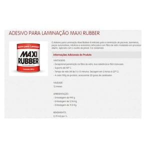 Contém: 1 unidade de adesivo para laminação Maxi Rubber de 990g.