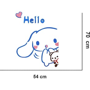 Adesivo para porta cinamorol Medida: 54 x 70 cm As imagens anunciadas são ilustrativas Tamanho do adesivo O adesivo da foto parece grande