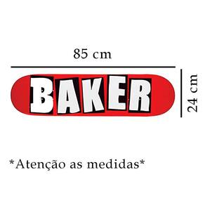 Adesivo para skate baker mod02 As imagens anunciadas são ilustrativas Tamanho do adesivo O adesivo da foto parece grande Então atenção: O modelo que está na foto não se refere ao tamanho do adesivo anunciado. deixamos o adesivo grande para que você possa visualizar melhor o produto que está comprando Vantagens: - já vai recortado - fácil aplicação e sem sujeira, não precisa de cola. - acompanha manual impresso. - renovação do ambiente. É o fim das paredes brancas, sem vida Onde aplicar Em qualquer superfície lisa. Onde não aplicar Paredes úmidas, superfícies porosas, com relevo, com texturas, irregularidades ou com infiltrações. Local para aplicação: aplique onde sua imaginação mandar paredes, móveis, revestimentos, azulejos, tetos, janelas, portas, vitrines, vidraças, , carros, notebook, banheiro, geladeira e muito mais. Marca: Não Informado