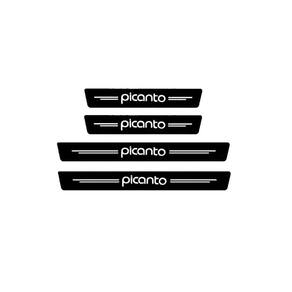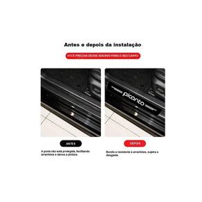 Adesivo para soleira resinado Elegance Picanto na cor preto KIT de Adesivos resinados para soleiras na cor PRETO, para o Elegance Picanto. Sua principal função é proteger a pintura do veículo no momento de entrada e saída do mesmo;