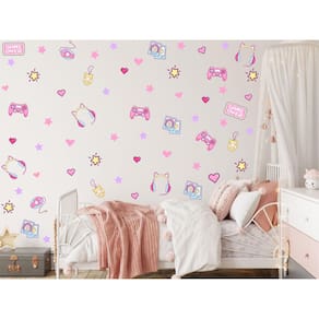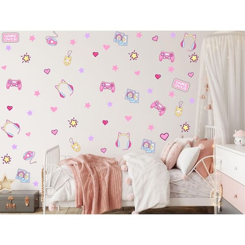Adesivo Parede Infantil Gamer Meninas Games Rosa