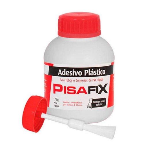 Instruções de uso 1. Lixar as superfícies a serem soldadas e testar o encaixe entra as peças, que deve ser bastante justo. Importante eliminar as rebarbas e chanfrar a ponta, para facilitar o encaixe nas conexões; 2. Utilizar a Solução Preparadora Pisafix, afim de limpar totalmente a superfície, eliminando impurezas, pó e oleosidade; 3. Distribuir uniformemente o Adesivo Plástico para tubos e conexões de PVC Pisafix nas bolsas e nas pontas a serem soldadas, utilize pincel ou o bico da própria bisnaga; 4. Encaixar as extremidades a serem soldadas, promovendo leve movimento de rotação entre as peças; 5. Remover o excesso do adesivo; 6. Esperar 1 hora para encher a tubulação de água e 12 horas para fazer o teste de pressão.