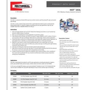- Especificações: cimento solvente de corpo médio quente 203L para aplicações de PVC; cor azul; cimento solvente de secagem rápida de ajuste rápido; compatível com LEED; pode ser utilizado em aplicações em clima frio