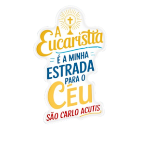 Adesivo resinado com a frase de São Carlo Acutis:“A Eucaristia é a minha estrada para o Céu.”