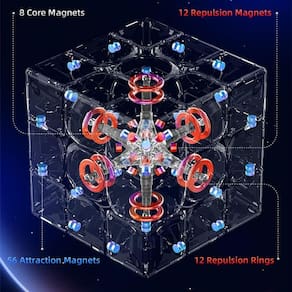 - O GAN13 Maglev alcança pela primeira vez a ação simultânea de repulsão magnética e atração magnética, um grande passo em direção ao desempenho perfeito do Speed Cube. Comparado ao GAN12 Maglev, é melhor controlado. O interior do GAN13 Maglev é carregado com 88 ímãs para uma explosão de força magnética mais uniforme, proporcionando a sensação de mão mais estável.