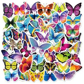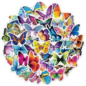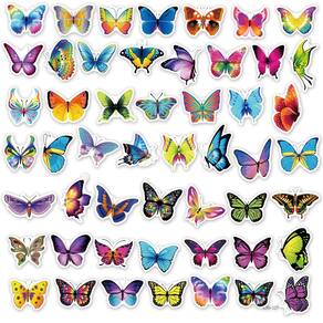 Adesivos, 50 unidades/lote, borboleta colorida, vinil impermeável
