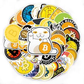 Adesivos Bitcoins, vinil impermeável, anime, 50 unidades/lote, 5-7 cm