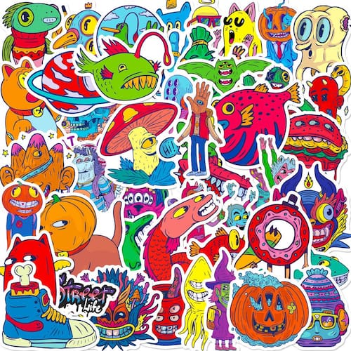 Material: papel e vinil Peso: 30-60 g Tamanho: 3-6 cm Quantidade: 50 unidades Vibrant Monster Designs: inclui 50 adesivos de monstros de desenhos animados exclusivos e coloridos com personagens peculiares, arte em estilo grafite e expressões engraçadas. Material de vinil durável: feito de vinil de PVC impermeável e à prova de sol, garantindo que os decalques permaneçam brilhantes, resistentes a rasgos e duradouros, mesmo com uso externo. Perfeito para decoração DIY: ideal para laptops, skates, motocicletas, malas, garrafas de água, cadernos e álbuns de recortes para adicionar um toque fresco e personalizado. Fácil de usar e remover: os adesivos são fáceis de descascar e aplicar e podem ser removidos sem deixar resíduos pegajosos ou danificar seus pertences. Diversão para crianças e adolescentes: Ótimo para crianças, estudantes e qualquer pessoa que adore personalizar seus equipamentos com decalques coloridos e divertidos com temas de monstros.