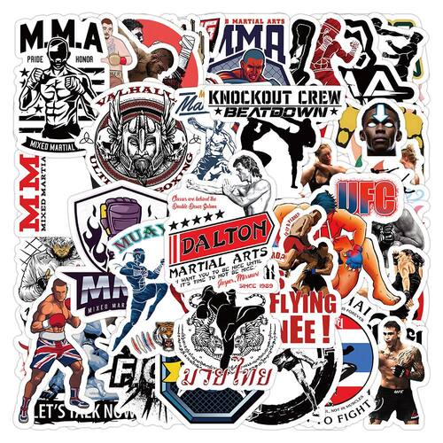 Adesivos de artes marciais mistas, vinil impermeável, 50 unidades