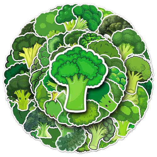 Adesivos de brócolis, couve-flor, vegetais, 50 unidades, impermeáveis