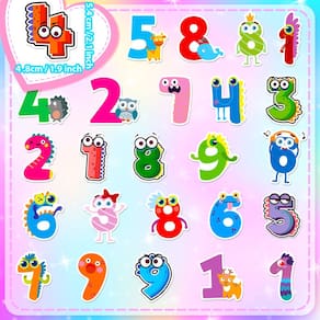 50 peças de adesivos numéricos de desenho animado: este pacote inclui 50 adesivos de vinil com números coloridos, divertidos e divertidos em estilo de desenho animado de 0 a 9, perfeitos para as crianças aprenderem e curtirem matemática. Design educativo e divertido: esses números são projetados com cores vibrantes e personagens fofinhos, tornando o aprendizado de números uma atividade envolvente e divertida para crianças, especialmente para a educação infantil. Impermeáveis e duráveis: feitos de vinil de alta qualidade, esses adesivos são à prova d'água, duráveis e perfeitos para decorar material escolar, garrafas de água, cadernos e muito mais. Fácil de aplicar e remover: esses adesivos são simples de aplicar em qualquer superfície lisa e podem ser facilmente removidos sem deixar resíduos, o que os torna ótimos para decoração temporária. Perfeitos para projetos de bricolage: ideais para personalizar cadernos, álbuns de recortes, projetos de arte DIY ou qualquer outro empreendimento criativo, esses adesivos numéricos de desenhos animados adicionam um toque criativo e educacional a qualquer projeto.