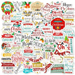 Adesivos de Natal, inglês, frases felizes, pacote de 50 unidades