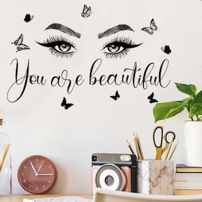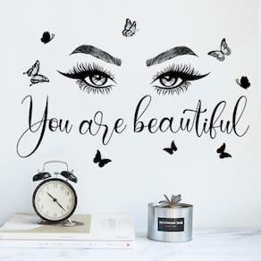 Material: PVC Tamanho: 30x60cm Chic Eye & Quote Design — apresenta elegantes olhos ilustrados, borboletas e a frase motivacional “Você é linda” para um toque artístico estiloso. Toque de quarto versátil — perfeito para quartos, salas de estar, penteadeiras, salas de maquiagem ou paredes de escritórios para criar uma atmosfera inspiradora e moderna. Fácil aplicação DIY — Feito de PVC autoadesivo, aplicação simples de descascar e colar, removível sem deixar resíduos ou danificar a tinta. Durável e impermeável — O PVC impermeável e resistente ao desbotamento garante detalhes vívidos e uma decoração duradoura, fácil de limpar com um pano úmido. Formato de tamanho médio — mede aproximadamente 30x60 cm, ideal para fundos de parede, espelhos ou layouts criativos em espaços pessoais.