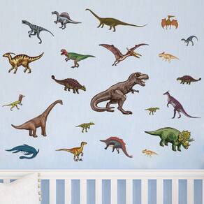 Material: PVC Tamanho: 25 x 30 cm 4 folhas 🦕 Variedade de dinossauros — Inclui vários dinossauros de desenhos animados, como T-Rex, Triceratops, Braquiossauro, Pterossauros e muito mais, para uma aparência pré-histórica divertida. Perfeitos para espaços infantis — Cores brilhantes e designs divertidos tornam esses adesivos ideais para decorar quartos infantis, creches, salas de jogos ou salas de aula. Easy Peel & Stick — Feito de PVC autoadesivo, simples de aplicar e remover em superfícies lisas, reposicionável sem danificar a parede. Durável e seguro — Impermeável, ecológico e fácil de limpar, garantindo cores vivas duradouras e uso seguro em ambientes infantis. Conjunto compacto de várias folhas — vem com 4 folhas (25x30 cm cada), permitindo arranjos flexíveis e ideias criativas de decoração de parede.