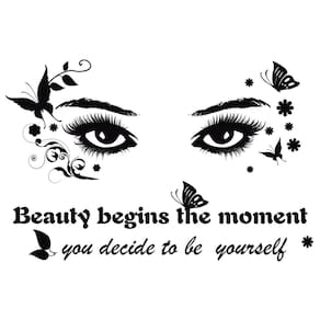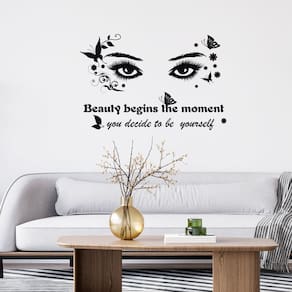Material: PVC Tamanho: 25x38 cm Peso: 37 g Elegant Eyes & Quote Design — Apresenta olhos artísticos com borboletas, detalhes florais e letras motivacionais, adicionando estilo e inspiração às suas paredes. Material de PVC durável — Feito de PVC ecológico à prova d'água, garantindo uso duradouro com impressão em preto vívido que resiste ao desbotamento e descamação. Fácil de descascar e colar — O design autoadesivo se aplica suavemente a superfícies limpas e planas, como paredes pintadas, azulejos ou vidro, e remove sem deixar resíduos. Decoração inspiradora versátil — perfeita para quartos, salas de estar, escritórios ou salas de aula, criando uma atmosfera positiva com arte de parede moderna. Tamanho compacto — mede 25x38 cm, é leve e fácil de arrumar de forma flexível para caber no espaço de parede desejado ou combinar com outros decalques decorativos.