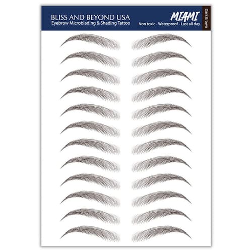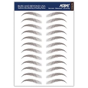 12 pares/pacote (a embalagem pode variar) Tatuagem de microlâminas e sombreamento: uma combinação de linha do cabelo e sobrancelhas em pó para obter uma aparência natural com um toque de maquiagem. Nós possuímos o design: o design da sobrancelha foi criado por nós; você não encontrará um design ou qualidade semelhante em nenhum outro lugar. Os benefícios da nossa tatuagem Eles são todos do mesmo tamanho, que é o melhor tamanho para todos. Você poderá usar todos os pares. Ao contrário de outras marcas, que vêm em uma variedade de tamanhos, você só pode usar alguns deles. São à prova d'água e ficam bem no chuveiro e na piscina. A tatuagem não é tóxica e não causará nenhum dano à sua pele. Pode ser utilizado por 1-3 dias A canela desaparece quando está completamente seca. A duração da sua tatuagem depende de: Colocação Atividade diária A química única da sua pele Como aplicar? Itens a serem preparados antes do uso: água limpa, tesoura, toalhas de papel ou toalhetes Corte a forma apropriada da sobrancelha. Rasgue a película transparente na superfície do adesivo de sobrancelha. A frente do adesivo está voltada para as sobrancelhas autênticos, cobrindo as sobrancelhas autênticos, e a parte de trás também é impressa com o mesmo padrão para que uma boa posição possa ser encontrada na frente do espelho. Aplique lenços umedecidos uniformemente na parte de trás dos adesivos para molhá-los e, em seguida, remova lentamente o papel após cerca de 15 segundos. - ? Eles são todos do mesmo tamanho, que é o melhor tamanho para todos. Você poderá usar todos os pares. Ao contrário de outras marcas, que vêm em uma variedade de tamanhos, você só pode usar alguns deles. - ? As tatuagens de sobrancelha são a melhor solução para pessoas que têm sobrancelhas finas ou sem sobrancelhas. Eles são fáceis de usar e você pode completamente - ? Coloque e esqueça! Eles são à prova d'água e ficam bem no chuveiro e na piscina. - ? É à prova de suor e manchas, para que você possa desfrutar de um dia inteiro de lindas sobrancelhas simplificadas. - ? Nossa folha individual pode ser usada por um mês. Você receberá uma folha com 12 pares. Um único par pode durar vários dias.