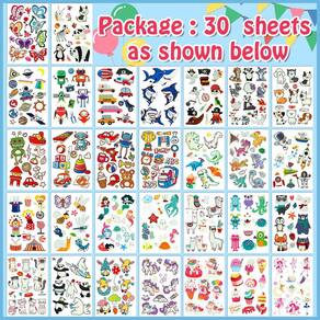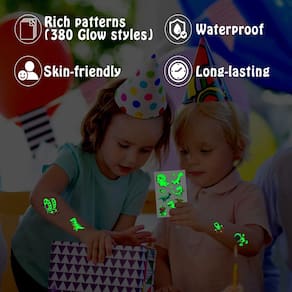 Tatuagens temporárias luminosas de 380 estilos para crianças em 30 folhas.