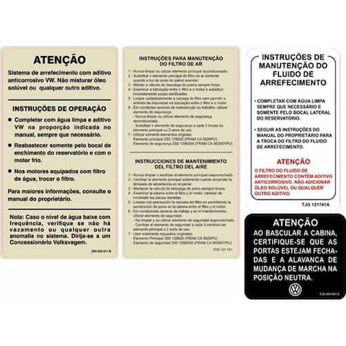 Adesivos etiquetas de advertência kit para caminhão volkswag Adesivos etiquetas de advertência kit para caminhão volkswagen cmetiq01 fixo fgc Características: Adesivo impressão uv resistente a sol e chuva. Marca: starpac Vantagens: Vinil do tipo permanente com mais desempenho e estabilidade. Fabricante nacional de películas; Durabilidade de em média até 4 anos após aplicação; Resistência térmica, química, à umidade e à corrosão; Adesivo calandrado de fácil aplicação e alto grau de aderência. Adquira adesivos de qualidade Adesivo impresso com tinta uv, resistente a sol e chuva Aceita verniz automotivo exceto adesivos resinados Material próprio para linha automotiva Itens inclusos: 4- unidades de adesivos Ref: spts-ad-734-r Info: Características: Alta qualidade e durabilidade. Material adesivo autocolante. Fácil aplicação. Suporta aplicação de verniz automotivo quando o adesivo não for resinado Produzido com recorte eletrônico. Ótima aderência. Resistente a chuva e raios uv. Não perde coloração. / entrega: Despachamos em até 24 horas úteis após confirmação de pagamento. Embalagem com proteção para transporte. Instalação: Limpe cuidadosamente as peças onde os adesivos serão aplicados, retirando todos os resíduos poeira, gordura, óleo, desengripante etc... Não utilizar materiais abrasivos sobre os adesivos. Após aplicação a cola leva até 48 horas para finalizar sua cura total. A spts produz adesivos automotivos seguindo medidas e cores compatíveis com o mercado. Trabalhamos com materiais de ponta, garantindo assim sua qualidade e também o melhor custo benefício para você. Possuímos adesivos para toda a linha automotiva, motos, caminhões, máquinas pesadas, máquinas agrícolas e também itens de personalização e resinados. Marca: Não Informado Ean: 7891532609303