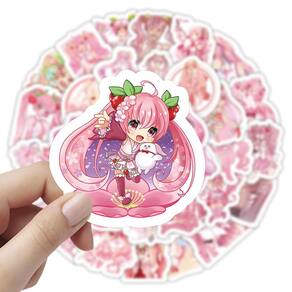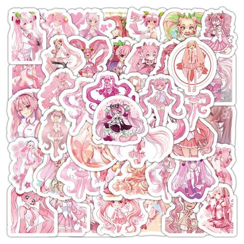 Adesivos Hatsune Miku, vinil impermeável, anime, 50 unidades