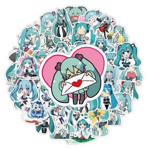 Adesivos Hatsune Miku, vinil impermeável, anime, 50 unidades
