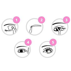 Para aplicar, limpe bem as pálpebras, removendo qualquer resquício de maquiagem, suor. após secar a área, localize o côncavo do olho e, com auxílio de uma pinça de ponta fina não inclusa , retire uma unidade da tira do rolo. feche o olho e aplique no côncavo com o aplicador incluso. Acerte as pontas para que fiquem bem coladas as pálpebras. Suavemente fixe o adesivo na pálpebra. Não há necessidade de apertar. Abra o olho e ajuste a posição com o aplicador na pálpebra, se necessário.