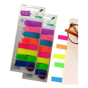 400 Adesivos Marcador De Página Neon 8 Cores Acompanha Régua