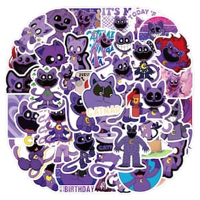 Adesivos roxos Catnaps, vinil impermeável, anime, 55 unidades