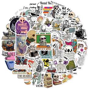 Adesivos Skulls Readings Books Vinil impermeável 50 unidades