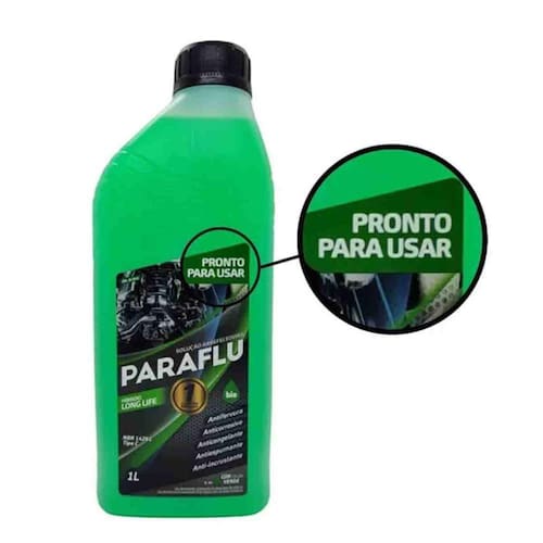 PARAFLU BIO HÍBRIDO PRONTO PARA USOA solução arrefecedora Paraflu Bio Híbrido Pronto para usar possui uma formulação balanceada a base de Glicol e inibidores de corrosão híbridos que foram desenvolvidos com a mais alta tecnologia para oferecer máxima proteção para o sistema de arrefecimento de motores endotérmicos de motocicletas, automóveis, utilitários, caminhões, máquinas agrícolas e motores estacionários. Paraflu Bio Híbrido possui a tecnologia Long Life HOAT (Hibrid Organic Acid Tecnology), que aumenta a vida útil do motor lubrificando a bomba dágua, a válvula termostática, evitando o ressecamento das mangueiras e protegendo contra a corrosão todos os tipos de motores. Sua formulação eleva o ponto de ebulição e reduz o ponto de congelamento, protegendo também contra o superaquecimento e o congelamento além de proteger contra a cavitação e não atacar os sensores eletrônicos. Possui propriedade antiespumante e anti-incrustante. Quando utilizado corretamente protege por até 4 anos ou 120.000km.