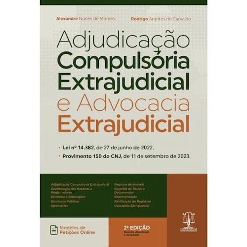 Em 15 de setembro de 2023, o Conselho Nacional de Justiça publicou o Provimento 150, atualizando o Código Nacional de Normas do Foro Extrajudicial (Provimento 149, do CNJ) com a regulamentação do artigo 216-B, da lei 6.015/73, que trouxe a possibilidade da adjudicação compulsória extrajudicial, requerida, processada e deferida diretamente perante o Ofício de Registro de Imóveis competente. Afirma que o novel instituto trazido pela Lei n. 14.382/2022 é uma inovação em prol da sociedade e tratam de temas como a adjudicação compulsória extrajudicial e a importância de sua regulamentação infralegal; a concordância e discordância do proprietário vendedor e a comprovação de impossibilidade de manifestação do proprietário vendedor, dentre outros. Ao final, afirmam ser possível “sumular que há possibilidade de uma regulamentação, que preveja cinco possibilidades para o Oficial de Registro de Imóveis”. Acrescentando aos Procedimentos Extrajudiciais disciplinados pelo Código de Processo Civil, que traz os importantes temas, como as atas notariais, demarcação e divisão de terras particulares, inventário extrajudicial e partilha, separação, divórcio, extinção da união estável, averbação premonitória, homologação de penhor legal e usucapião extrajudicial. A criação da Lei nº 14.382/2022, recentemente foi incluído o art. 216-B da Lei nº 6.015/1973, tratando da adjudicação compulsória extrajudicial de imóvel. Doravante podemos contar com mais um instituto fruto da Desjudicialização. Como se sabe, tramitam milhares de ações de adjudicação compulsória, as quais poderão ser solucionadas, muitas delas, como o aperfeiçoamento da legislação ora alcançado. É este o mote desta apresentação, descrever este novel instituto disponibilizado para ser concretizado sem a necessidade de processo judicial. Um processo extrajudicial é um procedimento diferente do judicial que ocorre em qualquer ambiente, e não necessariamente dentro de um tribunal. Os meios alternativos de solução de conflitos têm sido bastante populares, especialmente após a publicação do CPC de 2015, que consolidou as práticas da mediação, da conciliação e da arbitragem como vias alternativas em relação ao Poder Judiciário. Nesse mesmo sentido, é possível falar sobre os atos extrajudiciais, os quais são grandes aliados da solução consensual dos conflitos e da pacificação social. Estão associados à noção de “desjudicialização”, ou seja, da possibilidade de resolver questões jurídicas fora do âmbito das ações judiciais. Esse tema é de extrema relevância tanto para o cidadão, que terá acesso facilitado aos direitos legalmente previstos, quanto para os operadores do Direito – Advogados e Cartorários – que trabalharão diretamente com as situações que ensejam a prática dos atos extrajudiciais. As partes envolvidas, procuram conversar para chegar à solução de algum conflito. A ideia é entrar em um acordo. Por vezes, esta conversa poderá não ocorrer simplesmente pela má vontade de uma das partes envolvidas, ou por outros motivos. Os temas foram desenvolvidos com a mesma sintonia, com doutrina e prática, proporcionando ao operador do direito um material capaz de auxiliá-lo nas suas atividades forenses.