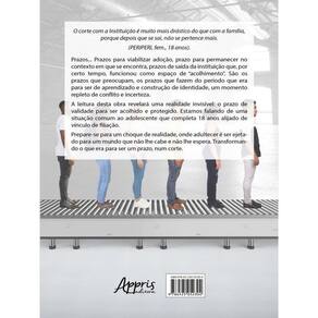 O corte com a Instituição é muito mais drástico do que com a família, porque depois que se sai, não se pertence mais. (PERIPERI, fem., 18 anos). Prazos… Prazos para viabilizar adoção, prazo para permanecer no contexto em que se encontra, prazos de saída da instituição que por certo tempo funcionou como espaço de “acolhimento”. São os prazos que preocupam, os prazos que fazem do período que era para ser de aprendizado e construção de identidade, um momento repleto de conflito e incerteza. A leitura desta obra revelará uma realidade invisível: o prazo de validade para ser acolhido e protegido. Estamos falando de uma situação comum ao adolescente que completa 18 anos alijado de vínculo de filiação. Prepare-se para um choque de realidade, onde adultecer é ser ejetado para um mundo que não lhe cabe e não lhe espera. Transformando o que era para ser um prazo, num corte. Ean: 9786525052304