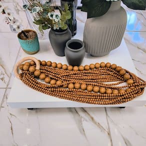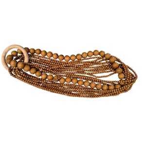 Adicione um toque de naturalidade e sofisticação ao seu ambiente com o Adorno Colar em Madeira Natural 55cm . Composto por uma argola de madeira, 10 cordões de contas pequenas e 1 cordão de contas grandes, todos feitos em madeira envernizada, este adorno combina um estilo rústico e moderno. Ideal para decoração de paredes, aparadores ou para complementar bandejas decorativas, é uma peça versátil que agrega charme e personalidade à composição.