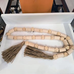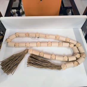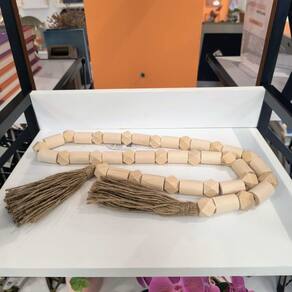 O Adorno Colar em Madeira com Corda de Sisal é um item decorativo único que une a rusticidade da madeira com o charme natural da corda de sisal. Com 136cm de comprimento, este colar é ideal para decorar bandejas, cestos, aparadores ou ser suspensos em ganchos, acrescentando uma atmosfera acolhedora e elegante ao ambiente. Seu design artesanal combina perfeitamente com estilos de decoração rústico, boho e minimalista, destacando a beleza dos materiais naturais.