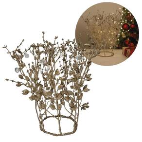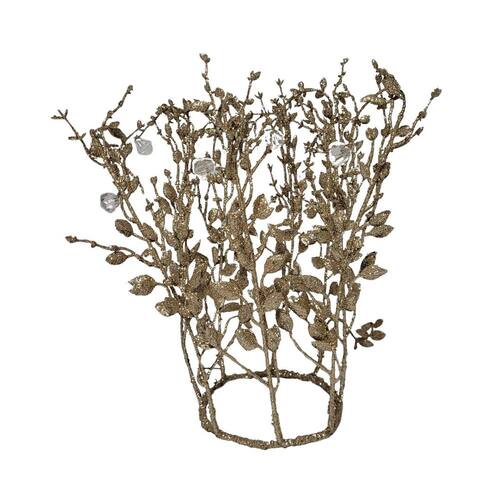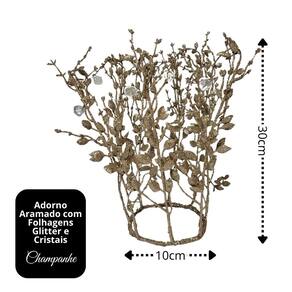 Adorno Natalino Coroa Folhagens Champanhe Cristais 30cm