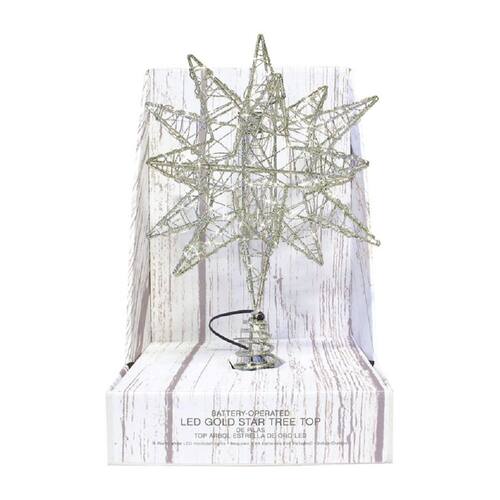 Adorno para árbol Estrella Microdot LED Dorada de 25 cm, paquete con 1 pieza. - Marca: Celebrations - Tipo de alimentación: LED - Color: Dorado - Diseño: Estrella Microdot - Tipo de producto: Adorno para árbol - Altura: 25 cm - Material: Metal - Cantidad por paquete: 1 pieza - Fuente de energía: Funciona con baterías - Número de baterías necesarias: 3 - Ancho: 25 cm - Tipo de batería: AA
