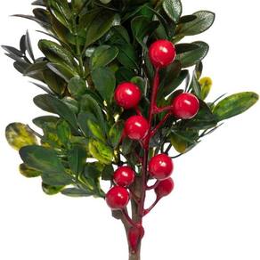 O Adorno Planta Holiday Navidad tem 40 cm e é produzido em plástico, ideal para expor e decorar mesas, estantes ou aparadores.